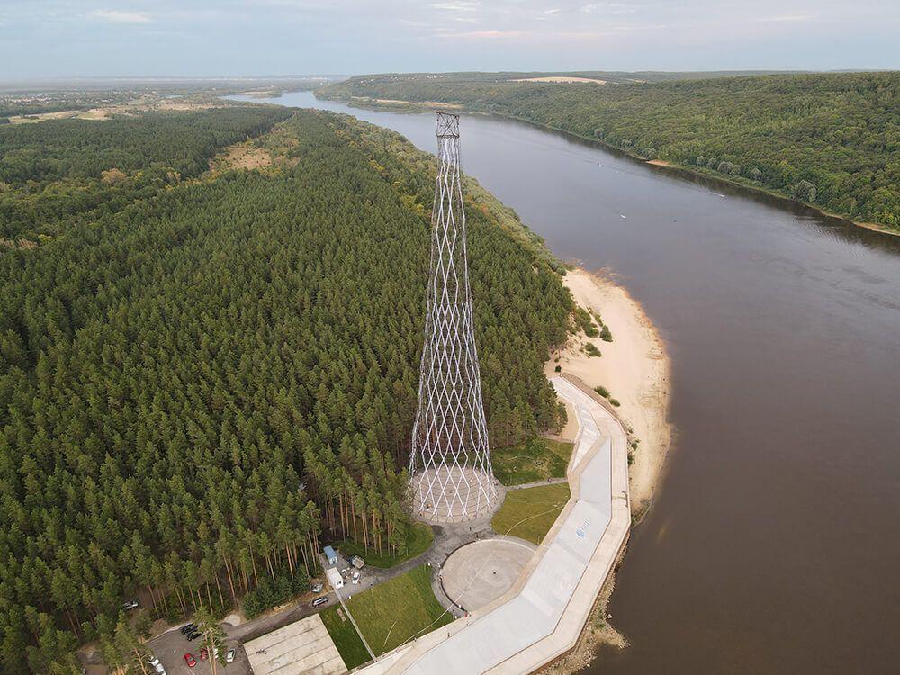 Шуховская башня возле Дзержинска на Оке - это уникальная башня-опора линии электропередач построенная по проекту инженера Владимира Шухова.